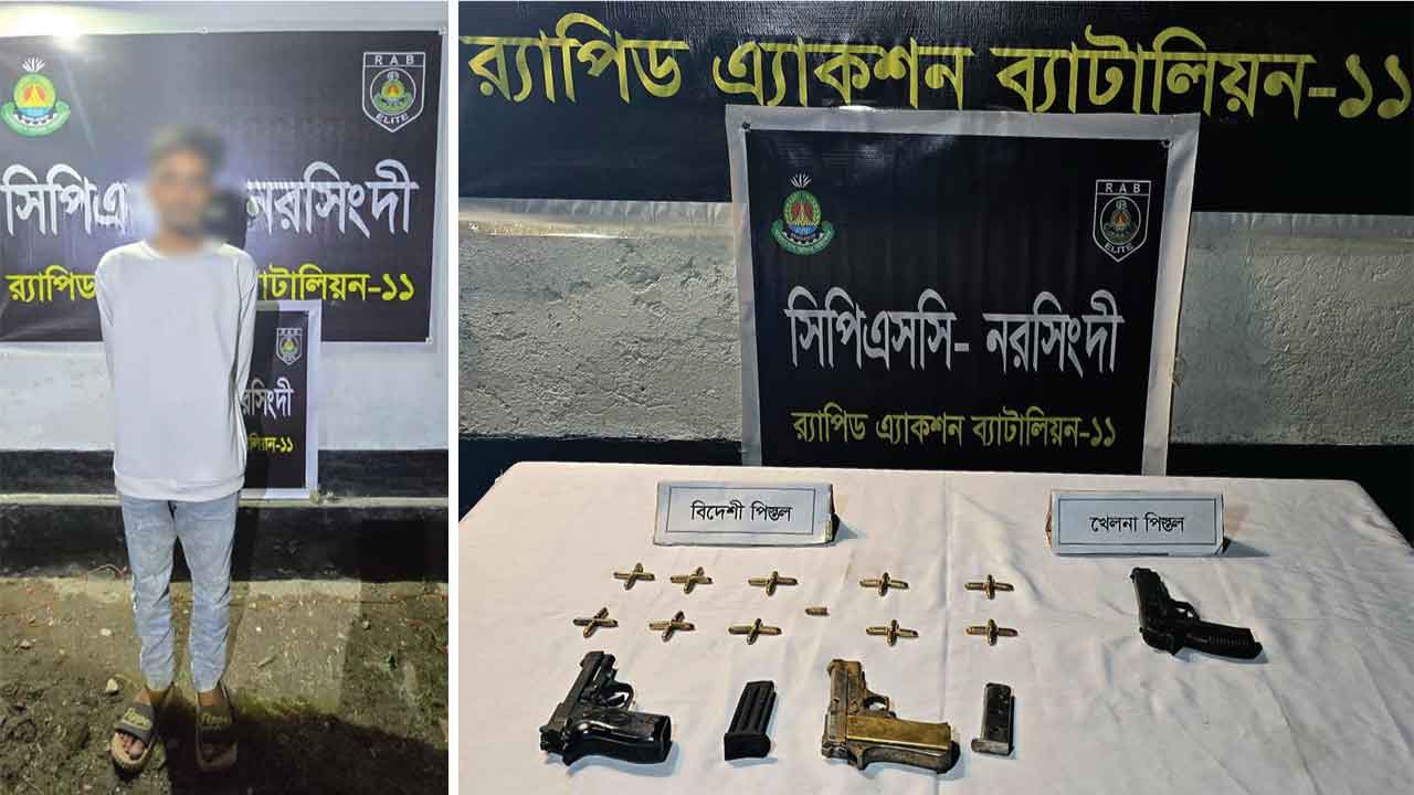 ইনকিলাব মঞ্চের মুখপাত্র ও ঢাকা-৮ আসনের সম্ভাব্য সংসদ সদস্য পদপ্রার্থী শরিফ ওসমান হাদিকে গুলির ঘটনায় ব্যবহৃত অস্ত্র ও গোলাবারুদ নরসিংদী জেলার সদর থানাধীন তরুয়া এলাকাস্থ মোল্লার বাড়ির সামনে তরুয়ার বিলে পানির মধ্য থেকে উদ্ধার করেছে র্যাব।