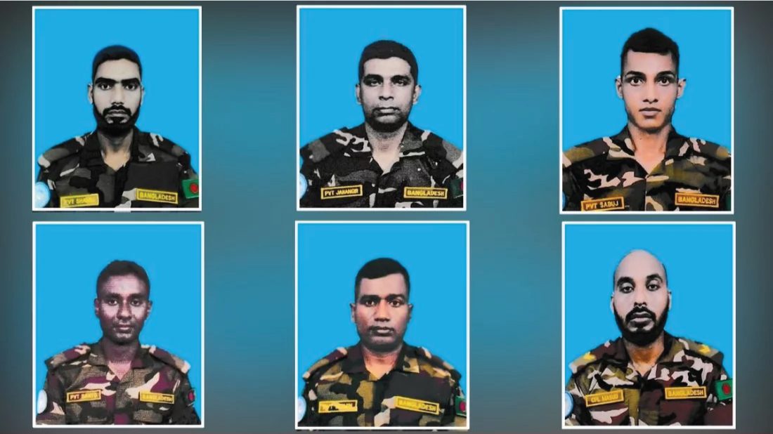 শনিবার সুদানের আবেই অঞ্চলের কাদুগ্লিতে জাতিসংঘের শান্তিরক্ষী বাহিনীর বাংলাদেশি কন্টিনজেন্টের ঘাঁটিতে ড্রোন হামলায় ছয় বাংলাদেশি শান্তিরক্ষী নিহত হন। নিহতরা হলেন কর্পোরাল মো. মাসুদ রানা, সৈনিক মো. মমিনুল ইসলাম, সৈনিক শামীম রেজা, সৈনিক শান্ত মণ্ডল, মেস ওয়েটার জাহাঙ্গীর আলম এবং লন্ড্রি কর্মচারী মো. সবুজ মিয়া।