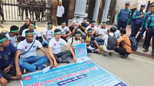 পুনর্বহালের দাবিতে পিলখানায় চাকরিচ্যুত বিজিবি সদস্যদের অবস্থান