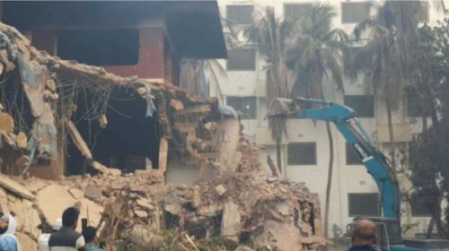 সকালেও ভাঙা চলছে ধানমন্ডি ৩২ নম্বরের বাড়ি